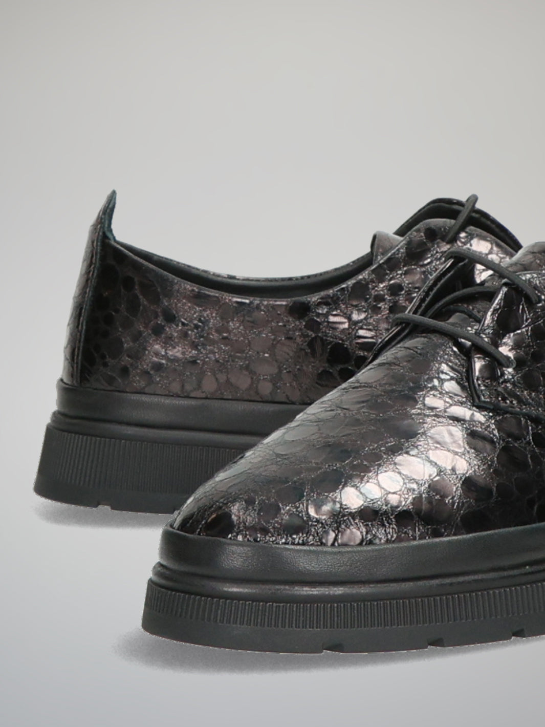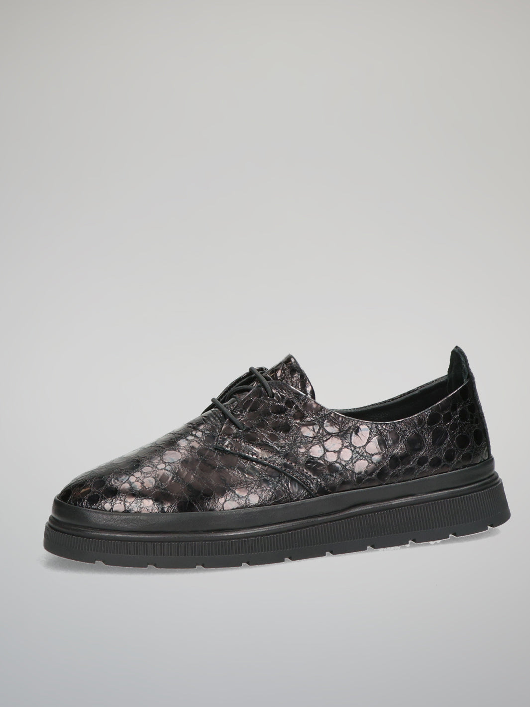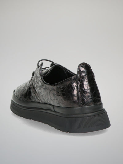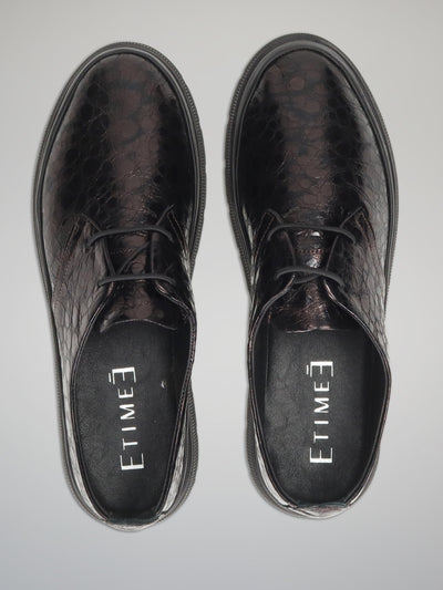 Embrace modern sophistication with these dark brown leather low shoes that blend classic elegance with contemporary flair. The embossed pattern and subtle metallic sheen create a refined, eye-catching texture that adds depth to any outfit. Lightweight and comfortable, these shoes are perfect for both workdays and weekend outings. Pair them with tailored trousers or a casual dress to express Your confident, polished style in every step.