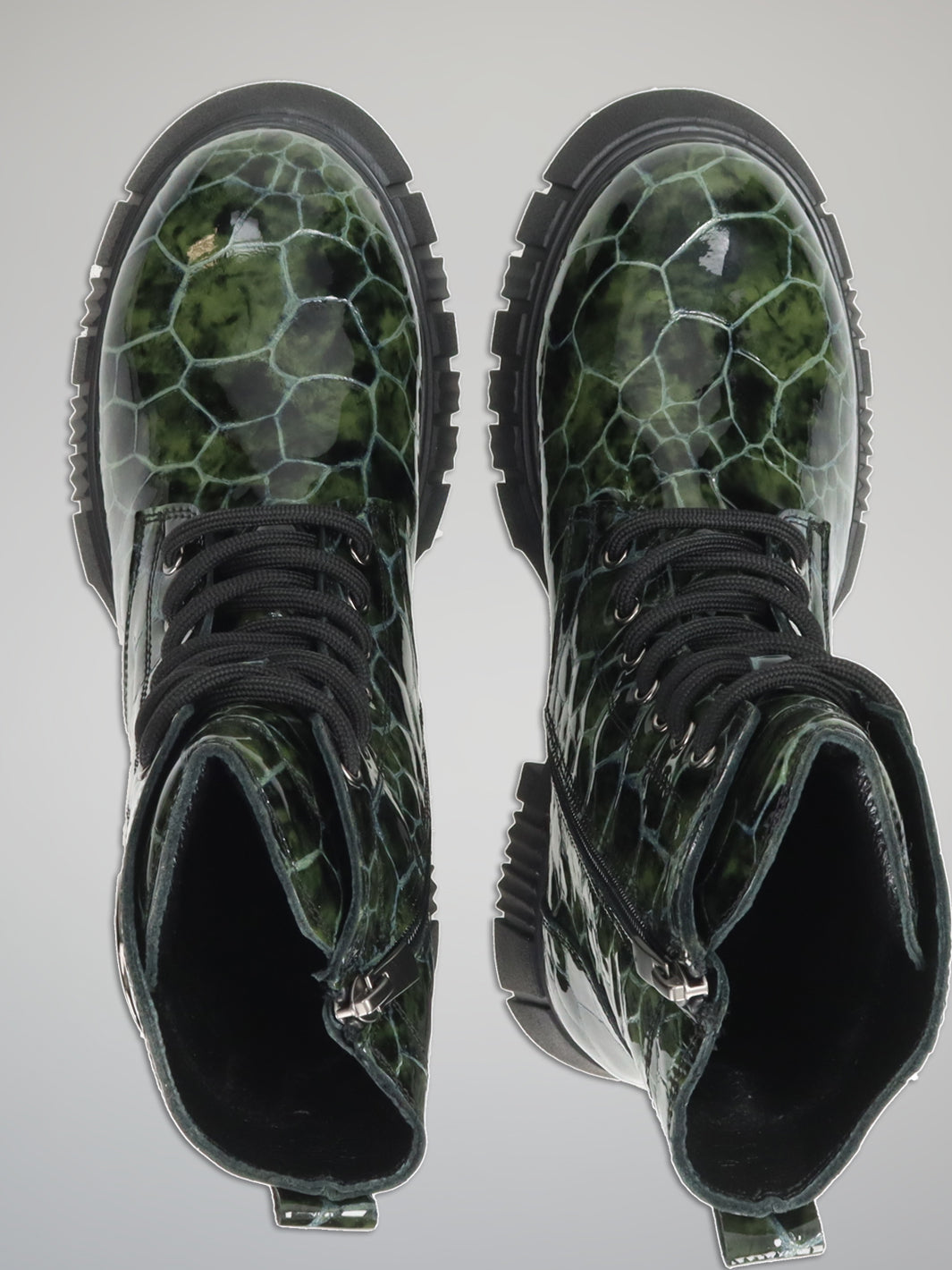 Let Your steps radiate confidence with these striking green ankle boots that redefine modern style. The glossy crocodile pattern, shimmering in deep emerald tones, brings an irresistible touch of luxury and boldness. Their sculpted sole and metallic emblem elevate the design, creating a perfect balance between power and elegance. Ideal for women who dare to stand out and express their individuality with every movement.