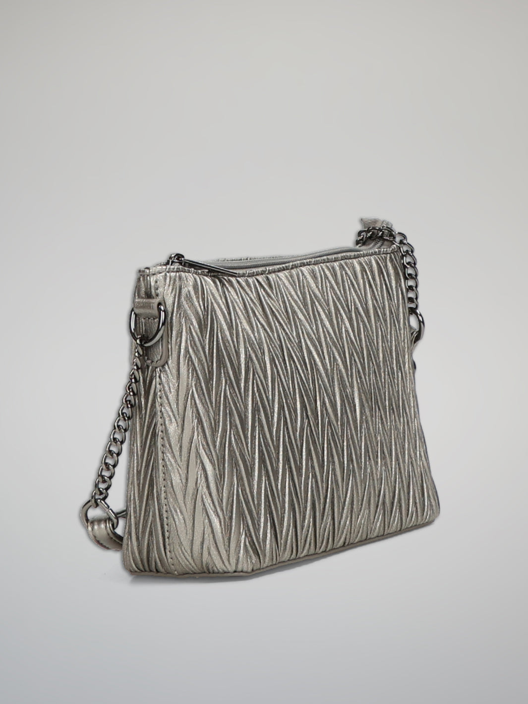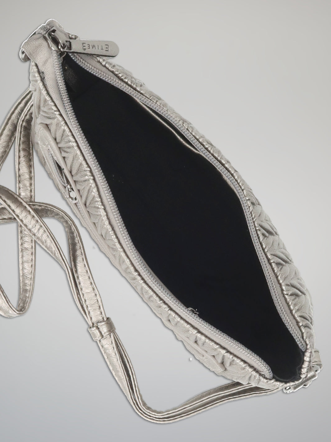 Elegant and stylish – the ETIMEĒ women’s handbag in a metallic shade is the perfect accessory for both everyday and evening wear. Its unique quilted texture and subtle sheen add a modern and sophisticated touch to Your outfit. The practical shape with ample space and an adjustable strap ensures comfort throughout the day. Luxurious yet versatile, this handbag pairs beautifully with jeans as well as elegant dresses.