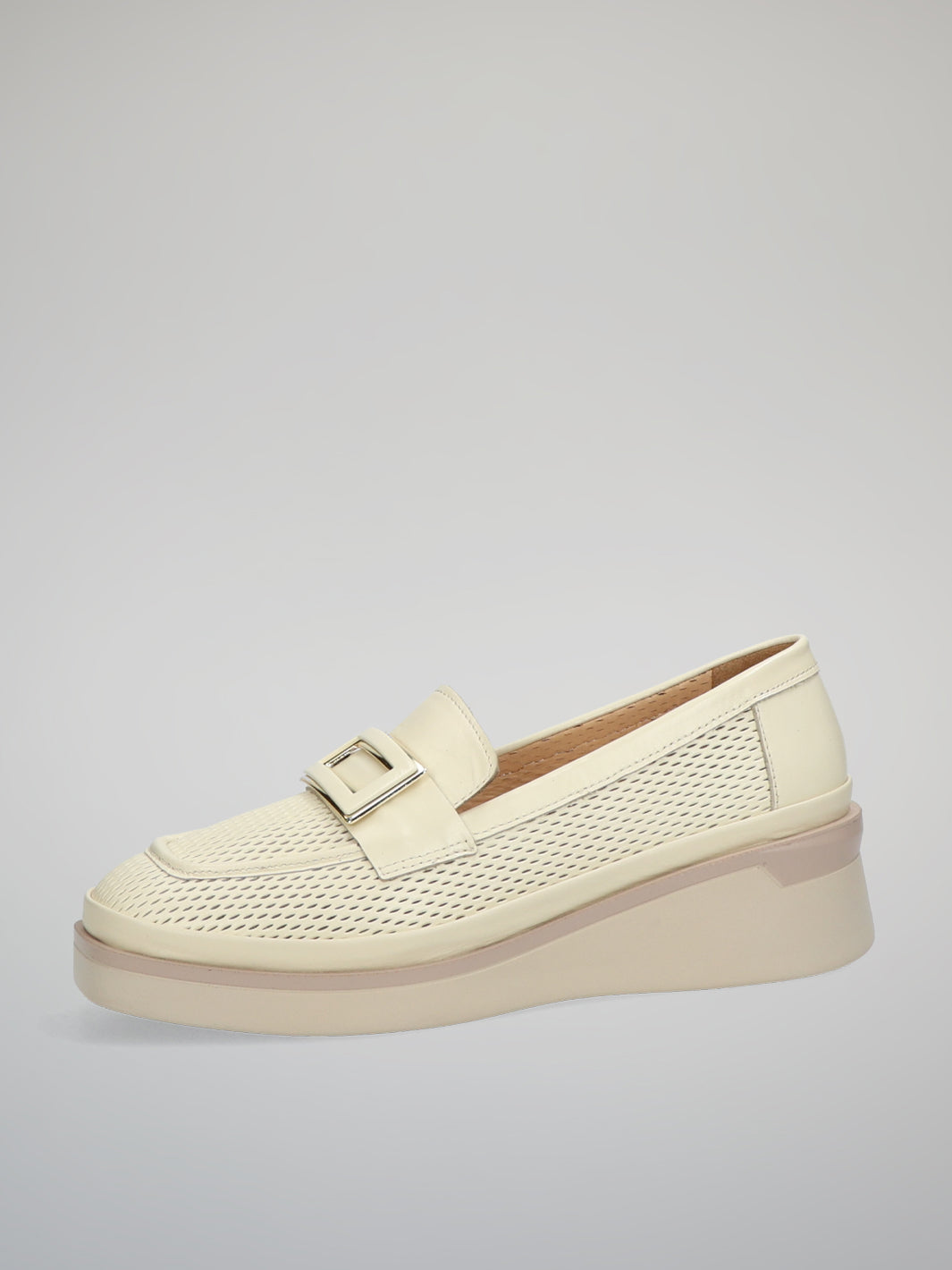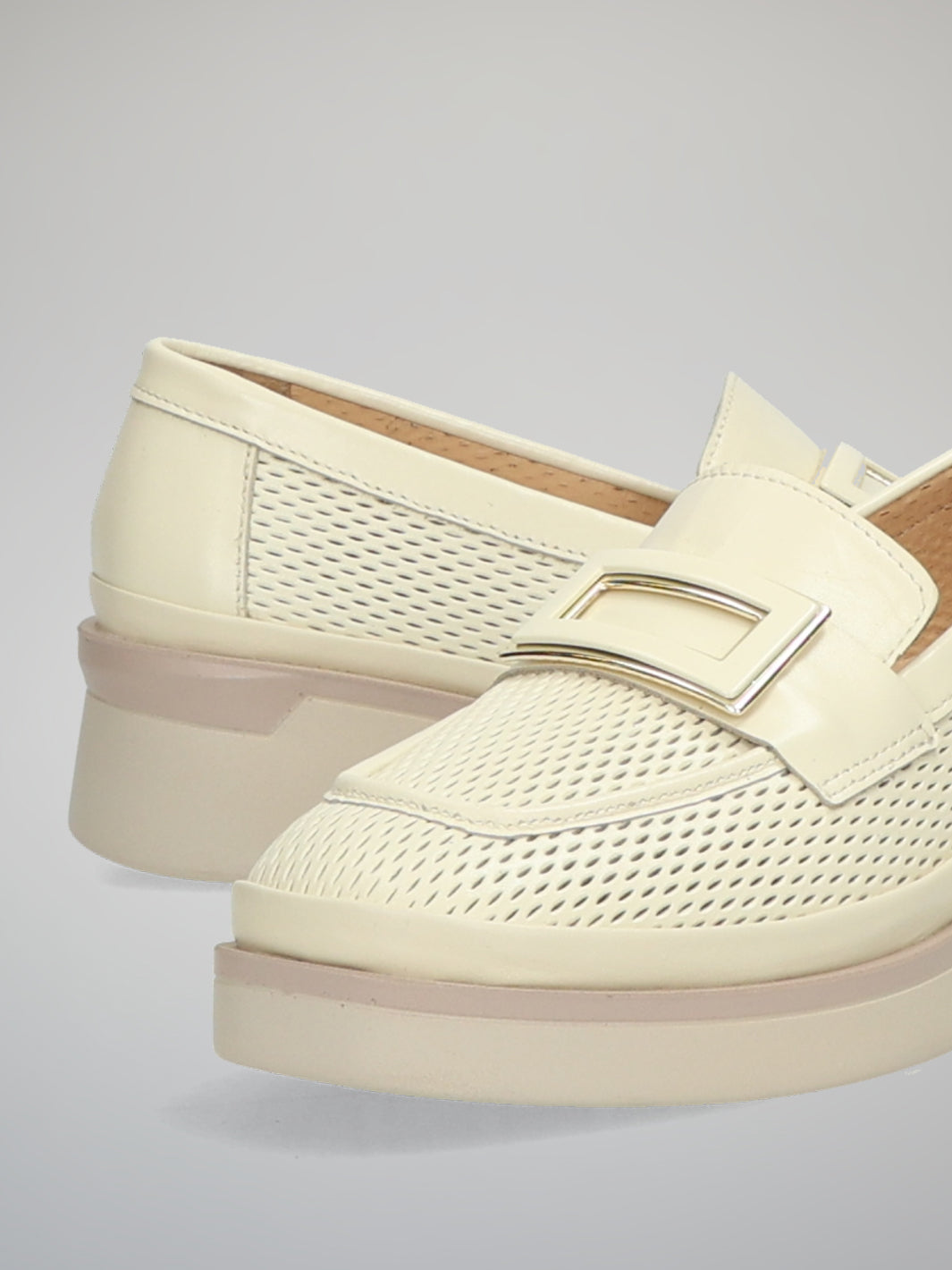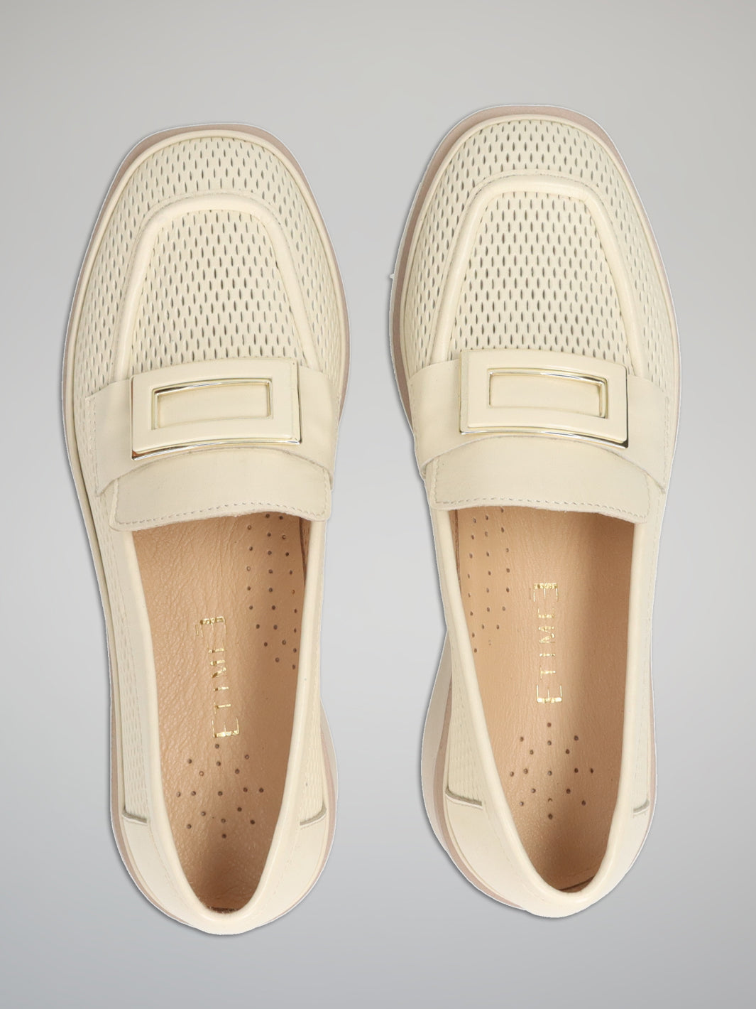 Softly refined and effortlessly elegant, these ETIMEĒ beige leather low shoes are a timeless addition to a feminine wardrobe. The delicate perforated pattern lends a light, airy touch, while the sleek strap with a subtle metallic accent creates a sophisticated focal point. Their warm neutral tone pairs beautifully with flowing dresses, tailored trousers or monochrome ensembles. Designed for days when you want comfort without compromising on style, they move seamlessly from office hours to evening plans. A graceful choice for women who appreciate understated luxury with a modern twist.