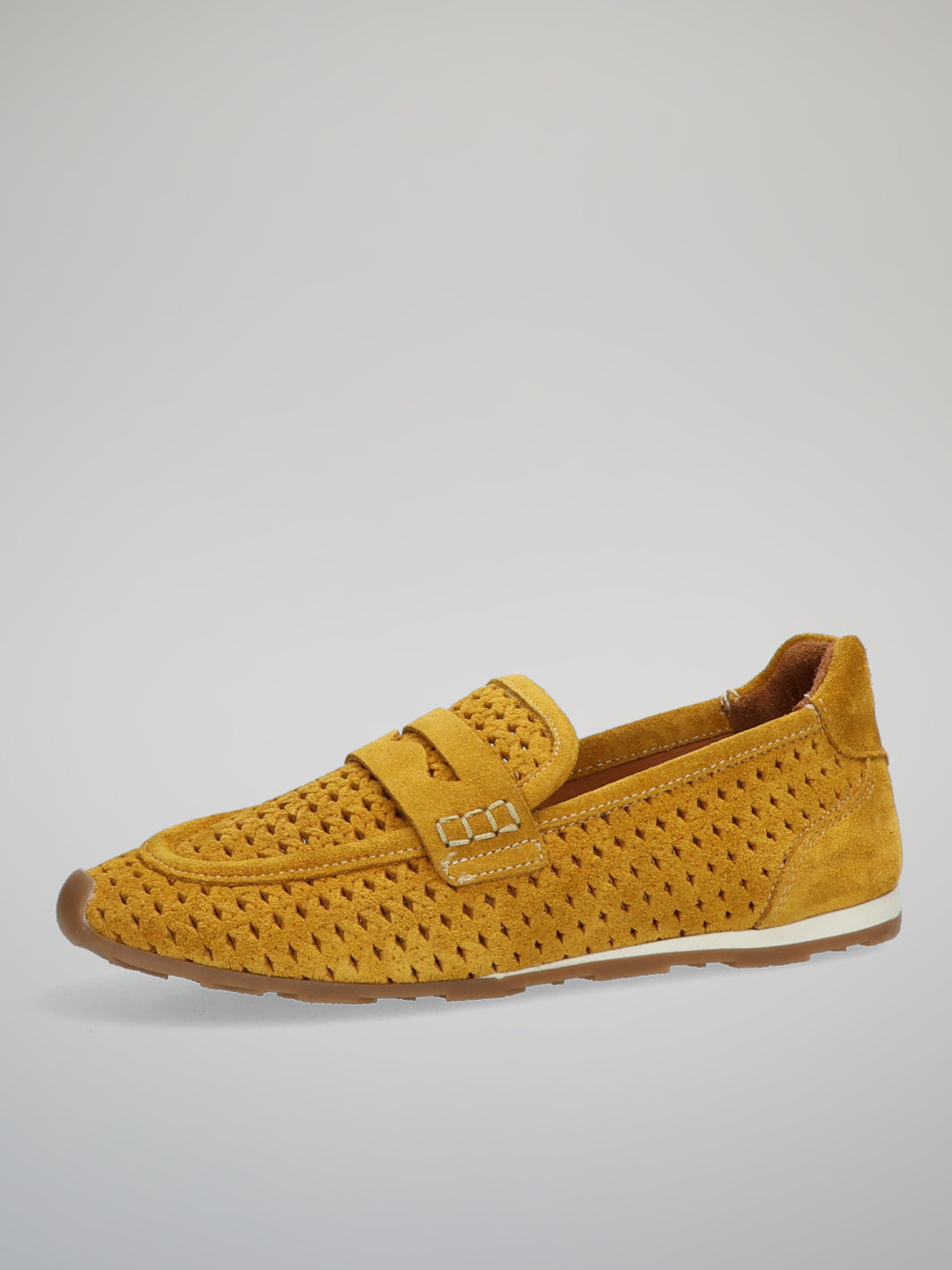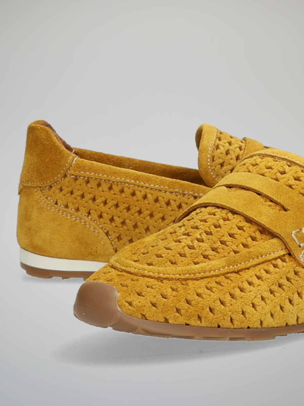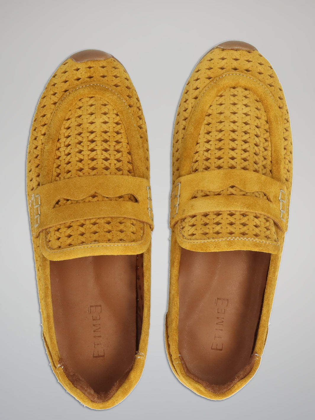Bright, stylish and full of personality, these ETIMEĒ suede moccasins bring a fresh pop of color to your everyday wardrobe. The warm yellow shade adds energy and charm, while the woven texture creates a beautifully detailed, elegant look. Their relaxed silhouette feels light and feminine, making them perfect for sunny days and casual city strolls. Pair them effortlessly with denim, linen outfits or summer dresses for a lively yet refined style. A cheerful statement piece designed to brighten every step.