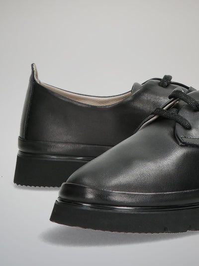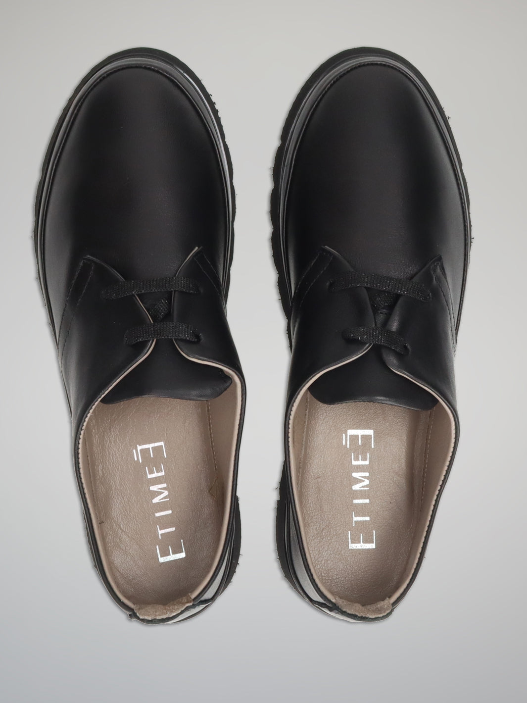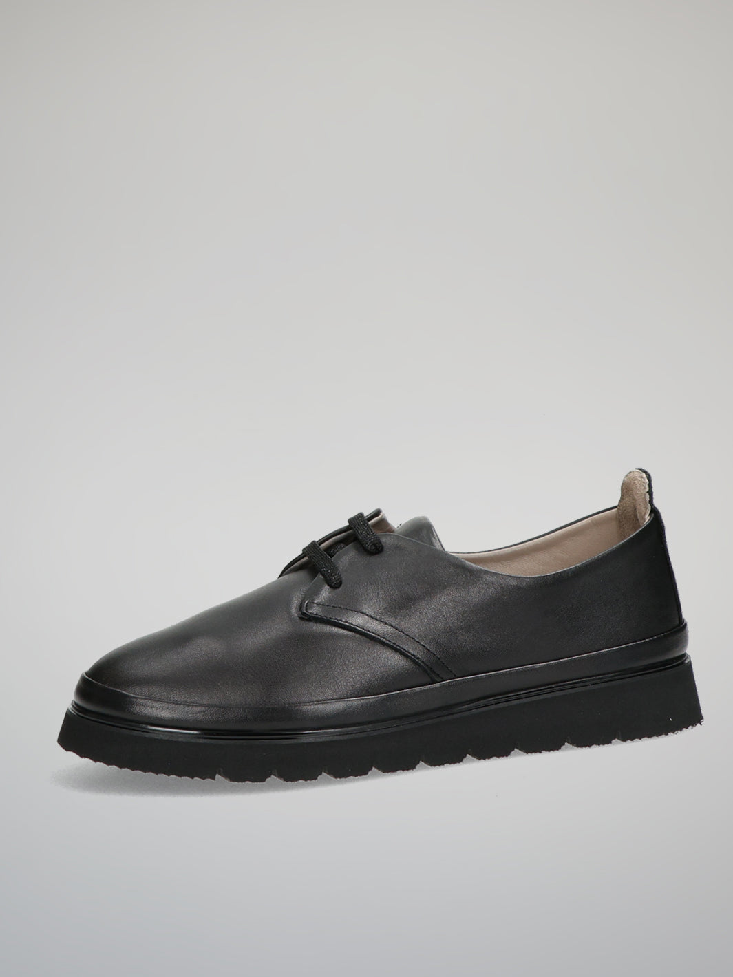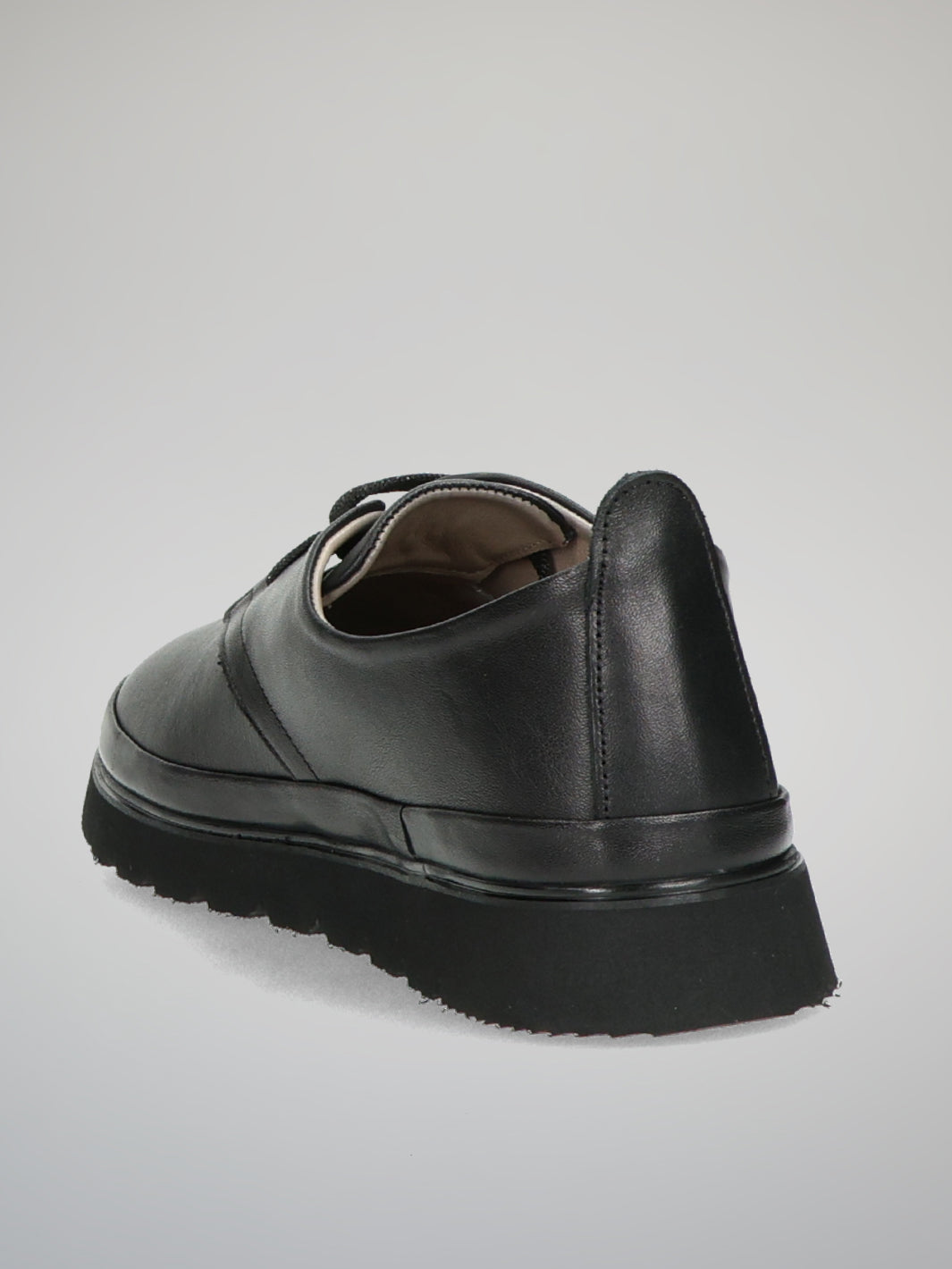 Experience understated elegance with these black leather low shoes designed for the modern woman. Their minimalist silhouette and smooth finish exude refined sophistication, while the lightweight platform sole ensures day-long comfort. Perfect for both office wear and off-duty looks, they pair effortlessly with tailored pieces or casual denim. Step into timeless style that balances confidence, comfort, and simplicity in every stride.